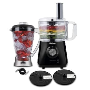 O liquidificador, prepara sucos, vitaminas, coquetéis, sopas, molhos, cremes e muito mais. Para isso, possui um copo com graduação, capacidade total de 2,2 litros e lâmina removível, com anel de vedação. O processador, processa todos os tipos de frutas, vegetais, queijos, carnes, grãos, coco, torradas, cebola, alho e outros. E para fazer tudo isso, acompanha jarra com capacidade para até 1,2 litros.Além de 2 velocidades + pulsar, que garantem a eficiência do serviço.