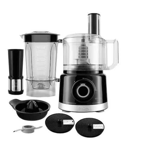 O Multiprocessador da Philco, vai te proporcionar muito mais comodidade e praticidade para o dia a dia na cozinha. Ele será seu item indispensável! Confira mais detalhes:Muito mais funcional!Com ele você terá 5 produtos em 1 só! Nunca foi tão fácil ralar, cortar, fatiar, processar, misturar, espremer, liquidificar, bater e picar! Tudo isso em um só produto, bastando apenas trocar o copo ou acessórios, conforme seja sua necessidade!Alta qualidadeAs jarras em plástico resistente, que vai proporcionar ainda mais durabilidade. Suas lâminas em aço inox possuem maior precisão de corte e mais resistência! Além disso, as duas velocidades e pulsar, vão te auxiliar em todas suas funções com mais agilidade!SegurançaEle possui pés antiderrapantes e trava de segurança, que vão garantir maior segurança durante o uso, evitando que o aparelho se mova ou se abra durante a utilização.Características:Marca: PhilcoModelo: PMP1500P TurboTipo: Processador de alimentosCapacidade: Liquidificador: 2,7 litros Processador: 1,5 litrosVelocidades: 2 velocidadesFunções: Processar, fatiar, ralador, espremedor, cortar, misturar, picar e triturarFunção pulsar: SimAlimentos indicados: Frutas, vegetais, queijos, carne, grãos, coco, torradas, cebola e alhoLâminas: 4 lâminasDiscos: 2 discosBase antiderrapante: SimTrava de segurança: SimPotência: 1000WConsumo: 0,4 kW/hConteúdo da embalagem01 processador, acessórios e manual de instruçõesDimensões:Altura: 42 cmLargura: 22,5 cmProfundidade: 21,5 cmPeso: 2,6 kgGarantia 01 ano (3 meses de garantia legal e mais 9 meses de garantia especial concedida pelo fabricante).