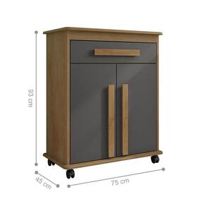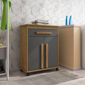 As portas possuem dobradiças metálicas, conta com uma prateleira interna.
