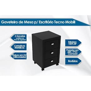 Gaveteiro p/ Escritório ME4108 c/ 3 Gavetas e Rodízios Nogal - Tecno Mobili