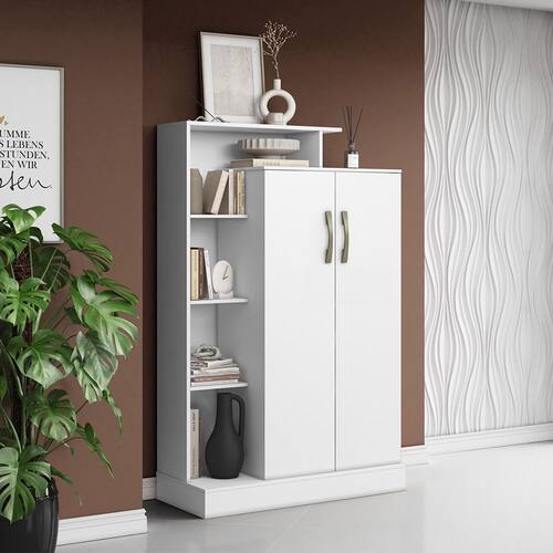Características: Estrutura em MDP Pintura semi-brilho 02 Portas com dobradiças metálicas Prateleiras internas e externas Puxadores de Plástico
