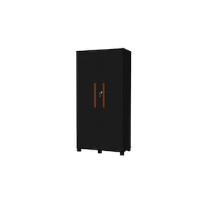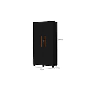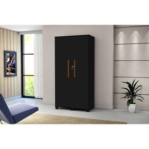 Multiuso Preto 2 Portas com Cabideiro Nicho e Prateleira MDF Pes de Madeira Com Chave