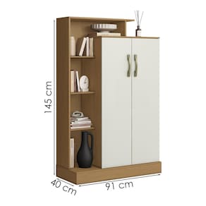 Multiuso Sapateira Florença, design diferenciado e versátil para complementar seu quarto. Estrutura em MDP (15/12 mm) com acabamento em Verniz. Possui portas com dobradiças metálicas, puxadores em plástico, nichos laterais e prateleiras internas. Este produto será entregue em 1 volume.