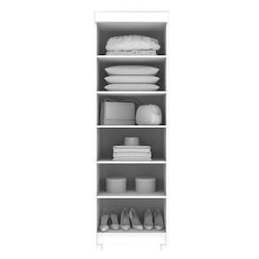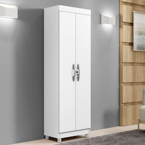 Multiuso Sapateira New Roma 2 Portas 6 Prateleiras - Benetil Branco O Multiuso New Roma e a combinacao perfeita de charme e elegancia para qualquer ambiente. Com 6 prateleiras e 2 portas, oferece um espaco amplo e organizado para acomodar todos os seus pertences, alem de possuir chave para garantir a privacidade. Fabricada em MDP Perfect, que alia sustentabilidade e inovacao tecnologica, proporciona durabilidade e facilidade de limpeza, trazendo sofisticacao ao mobiliario. Sua pintura UV de alta resistencia facilita a manutencao e e ecologicamente correta, utilizando madeira de reflorestamento para evitar o desmatamento. Caracteristicas: Material principal: MDP Espessura das chapas: 15 mm Escala de brilho: semi fosco Acabamento: Pintura UV Sistema de montagem: parafuso, cavilha e cantoneiras metalicas Quantidade de portas: 02 Quantidade de prateleiras: 06