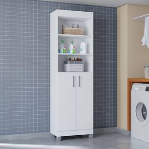 Com duas portas e prateleiras bem distribuidas, o movel proporciona amplo espaco interno para armazenar e organizar diversos itens essenciais: