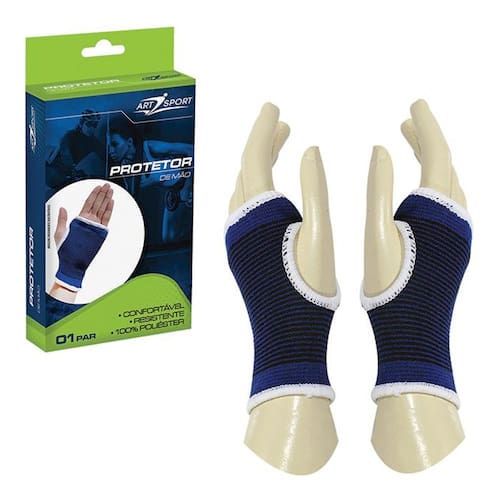 Tensor para punho Marca: Art sport Cor: Azul Material: 100% poliéster Ideal para praticas esportivas Fácil de usar Mario área de proteção Medidas Larg x Alt 12,5 cm x 8,5 cm Confortável e resistente. Inclusos 01 par Ean: 7899658313852