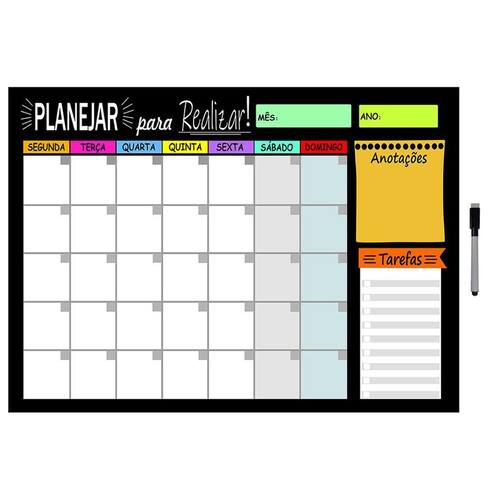 Mural Planejador de Metal Mensal 40x60cm + Caneta Nossos planejadores são uma ótima opção para você organizar suas tarefas, compromissos, dietas, planos de estudo, definir suas metas, objetivos, entre outros.