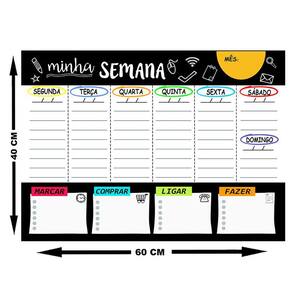 Mural Planejador de Metal Semanal 40x60cm + Caneta Nossos planejadores são uma ótima opção para você organizar suas tarefas, compromissos, dietas, planos de estudo, definir suas metas, objetivos, entre outros.