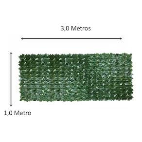 Folhas de ficus artificial; 2 Rolos com 1 metros x 3 metros cada, podendo montar 3m x 2m ou 6m x 1m; Peso aproximado: 2kg; Obs.: Note pelas fotos que as folhas são espaçadas, ou seja, é necessário montar um fundo verde atrás se for prender em uma parede branca por exemplo.
