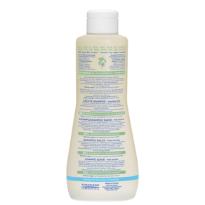 Shampoo para os cabelos finos e delicados do bebê de pele normal. Mustela Bébé Shampooing Doux higieniza com delicadeza e previne a formação de nós.