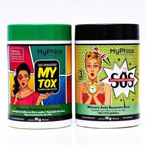 Volume indesejado Com nossoMYTOX não Cabelo liso e realinhadoA máscara foi desenvolvida para UltraHidratação e redução de volume. Composta por Manteiga de Karité E Proliss 100,Promove aos cabelos crespos e cacheados hidratação intensa, sela a cutícula,Deixando os fios lisos com balanço natural e muito brilho. Os ativos emConjunto promovem efeito liso natural, nutre e hidrata de dentro para foraRecuperando os fios, resultando em um liso resistente, saudável e muito brilho. Máscara SOS antiemborrachamento MyPhiosTratamento de alta performance. Uma máscara de reconstrução e hidratação paraCabelos secos e danificados de efeito intenso. Tratamento capilar com ativos deQualidade e tecnologia exclusiva. Máscara antiemborrachamento profissional,Possui fórmula concentrada que proporciona um tratamento instantâneo. ElaRestaura, nutre e auxilia na reconstrução das fibras capilares danificadas porAgentes agressores tanto mecânicos quanto químicos. Penetra de maneira profundaNos fios, promovendo um tratamento eficiente de fora para dentro. FortalecendoE combatendo a porosidade e diminuindo o frizz, além de eliminar totalmente oEfeito emborrachado dos fios, doando vida imediata aos cabelos. No cronogramaCapilar entra na etapa de reconstrução, uma máscara profissional de efeitoImediato. Tratamento para cabelos fragilizados pré e pós química.Indicação:Uso pré e pós química. Ideal para cabelos danificados, frágeis, quebradiços eQuimicamente tratados e secos. Tratamento capilar liberado para técnicas looPow. Contém:1 redutor De Volume My phios BotoxDe 1kg1 my Phios Máscara Reconstrutora SosAntiemborrachamento 1kg