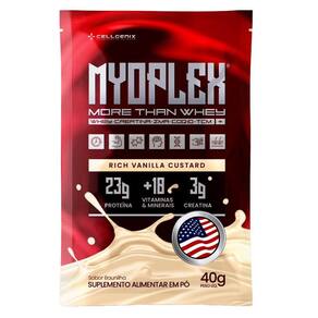 DESCRIÇÃOMyoplex é mais que um whey!Todos os benefícios disponíveis em um sachê prático, que é composto por CREATINA (3g), COENZINA Q10, Z.M.A e MACA PE, fácil de transportar, bastando você adicionar água para fazer um shake delicioso e nutritivo que irá promover e eliminar a vontade de ingerir calorias vazias.Além de entregar 18 vitaminas em sua composição, o Myoplex é o que você precisa ter mais energia, bom funcionamento da pele e cabelo.Myoplex é único. Myoplex é Cellgenix Nutritional Science.BENEFICIOS18 vitaminas e minerais;Auxilia no metabolismo;Entrega potência e boa recuperação;Nutrição proteica time release;Otimiza exercícios de alta intensidade;Diminui o tempo de recuperação entre as séries;Melhora a hidratação;SUGESTÃO DE USOConsumir 1 sachê (40g) diluído em 200ml de água gelada e/ou leite desnatado uma vez ao dia ou conforme a orientação de um médico ou nutricionista.Dica: para ainda mais cremosidade, adicione algumas pedras de gelo e bata no liquidificador.NÃO CONTÉM GLUTÉN.CONTÉM LACTOSE.Produto dispensado de registro RDC nº 27/2018.