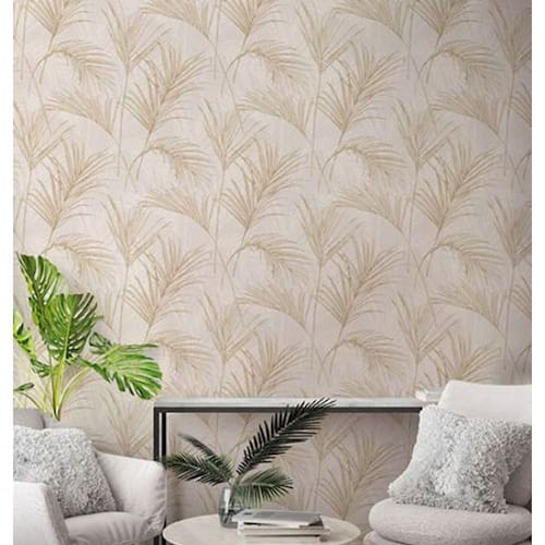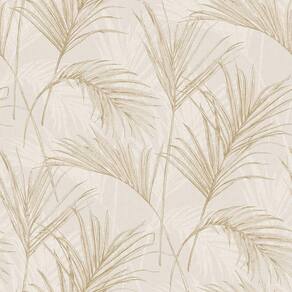 Motivos de palmeira tropical monocromática para dar uma aparência totalmente tropical às paredes do seu quarto ou qualquer outra área de convívio, aprimorada com detalhes metálicos suaves.