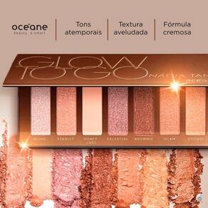 Paleta de sombras com 8 cores. Nádia Tambasco By Océane Glow to Go traz tons atemporais, que se adaptam em uma make incrível para todos os tons de pele e para qualquer ocasião. Idealizada em parceria com maquiadora e embaixadora da marca, que propõe um olhar elegante, destacado, para looks dia e noite.