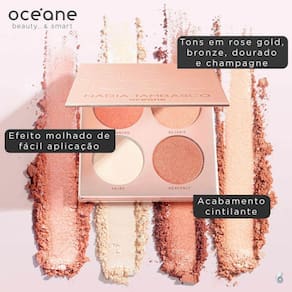 Paleta de iluminadores com 4 cores. Nádia Tambasco By Océane Glow to Go para proporciona brilho natural para todos os tons de pele, com diferentes efeitos para uma maquiagem glamourosa e sofisticada a qualquer hora do dia.