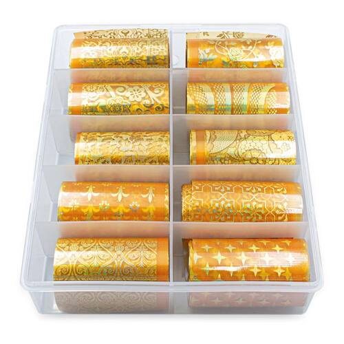 Contém: Uma caixa com 10 rolos de Nail Foil para unhas de 100 cm, Dourado, no estilo da imagem do anúncio. Foil é uma folha fininha para decoração. Possui estampas diferentes desde as básicas até as mais chamativas e futuristas, com ela você transfere o desenho da folha para sua unha e também pode usar de varias formas para decora-lá. 100% novo de alta qualidade; Tem um design especial único que pode fazer suas unhas mais bonitas; A pintura elegante no adesivo fica muito e atraente; Apropriado para sua festa ou olhar à moda; Pode ser Utilizado por qualquer pessoa que ame unhas lindas <3 Não se desvanece e mancha. Fácil de usar em unhas naturais ou artificiais. Os rolos tem desenhos aleatórios enviados conforme , não havendo possibilidade de escolha. Boas Compras ; Marca: Arte Seducao
