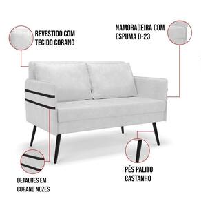 Que tal a Namoradeira Mari? Imagine-se utilizando esse produto e usufruindo de todos os benefícios que ela oferece. Usar essa Namoradeira é bem simples! Pode ser utilizada para evidenciar e enriquecer o seu ambiente, descansar depois de um dia longo de trabalho, ver aquela série favorita ou simplesmente ler seu livro predileto. Sua estrutura é confeccionada em madeira de eucalipto proveniente de reflorestamento, suportando em média até 120 Kg, possuí Pés Palito de Ferro, garantindo uma maior resistência e durabilidade ao produto, o estofamento do assento e encosto é composto de espuma D-23, revestido em tecido Corano. Então, se a sua dificuldade é a otimização de espaço, esta namoradeira além de confortável e sofisticada, traz toda a funcionalidade que você precisa. Apenas algumas unidades estão disponíveis, separe o sua Namoradeira Mari antes que acabem!