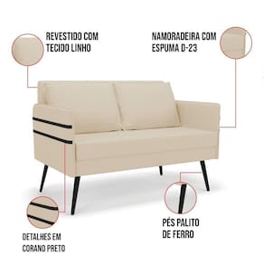 Que tal a Namoradeira Mari? Imagine-se utilizando esse produto e usufruindo de todos os benefícios que ela oferece. Usar essa Namoradeira é bem simples! Pode ser utilizada para evidenciar e enriquecer o seu ambiente, descansar depois de um dia longo de trabalho, ver aquela série favorita ou simplesmente ler seu livro predileto. Sua estrutura é confeccionada em madeira de eucalipto proveniente de reflorestamento, suportando em média até 120 Kg, possuí Pés Palito de Ferro, garantindo uma maior resistência e durabilidade ao produto, o estofamento do assento e encosto é composto de espuma D-23, revestido em tecido Linho. Então, se a sua dificuldade é a otimização de espaço, esta namoradeira além de confortável e sofisticada, traz toda a funcionalidade que você precisa. Apenas algumas unidades estão disponíveis, separe o sua Namoradeira Mari antes que acabem! Dimensões da Namoradeira: Altura total: 82 cm Largura total: 110 cm Profundidade total: 74 cm Altura do encosto: 35 cm Largura do assento: 104 cm Profundidade do assento: 57 cm Altura do chão ao assento: 47 cm Espessura do assento: 22 cm Altura do chão ao braço: 46 cm Altura interna do braço: 19 cm Tamanho dos pés: 25 cm Espessura do braço: 4 cm Peso: 20 kg Dimensões da Almofada: Altura total: 34 cm Largura total: 51 cm Profundidade total: 20 cm Peso: 0,3 kg Especificações do Produto Estrutura: Madeira Eucalipto Espuma: D-23 Tecido: Linho Tipo de pés: Pés Palito de Ferro Peso suportado: Até 120 Kg Garantia: 90 dias contra defeito de fabricação Montagem: O produto vai montado, apenas rosquear os pés Instruções de limpeza: Utilizar um pano limpo e levemente úmido Você irá receber: 01 Volume com 01 Namoradeira Observações Relevantes - Todos os produtos vão embalados com total segurança; - As cores dos produtos podem sofrer alterações dependendo do seu monitor; - Para futuras compras, não garantimos a mesma tonalidade de cor, pois existe variação a cada lote do fabricante do tecido; - As imagens são meramente ilustrativas, não acompanham objetos de decoração e eletros; - Confira as dimensões do produto no momento da compra e certifique-se de que passará normalmente por escadas, elevadores, portas e corredores; - Importante: Por se tratar de estofado as medidas podem ter uma pequena variação em até 3 cm; - Não nos responsabilizamos no ato da entrega por montagens, desmontagens, instalações de produtos; - Não nos responsabilizamos no ato da entrega por subir escadas, elevadores, nem utilização de guinchos ou equipamentos similares para acesso a pisos superiores em apartamentos; - A entrega do produto é realizada em todo território nacional, até onde as rodovias alcançam, entregas fluviais ou aéreas devem ser cotadas a parte; - Observando as orientações acima, evita-se futuros desagrados ou imprevistos com a entrega do produto. Havendo despesas adicionais, serão de responsabilidade do cliente;