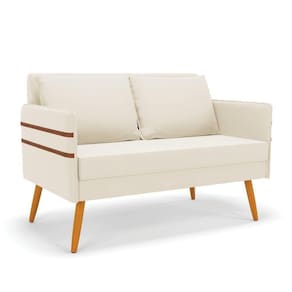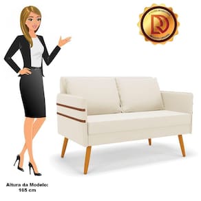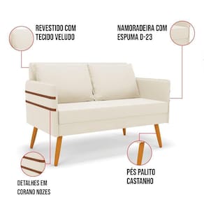 Namoradeira 02 Lugares Mari Veludo Pés Palito Castanho - D'rossi Cor Bege