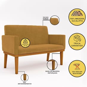 Seu estofado em tecido suede 100% poliéster garante um toque macio e sofisticado, enquanto a espuma D-23 de alta densidade proporciona o conforto ideal para seu dia a dia. A estrutura em madeira de eucalipto de reflorestamento oferecer excelente durabilidade. Além disso, conta com percintas elásticas no assento. Os pés palito, trazem charme retrô ao ambiente deixando ainda mais elegante.