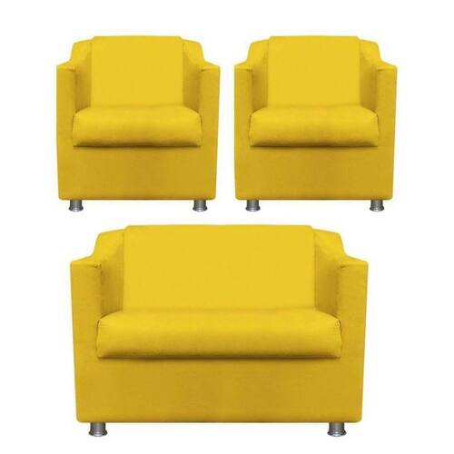 Namoradeira + 2 Polt. Bia P/ Sala de Estar Consultório Clinica Hospital Recepção Suede - Amarelo