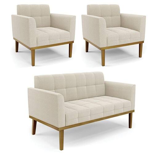 O Sofá Namoradeira e 2 Poltronas Elisa é uma mobília que combina elegância, conforto e durabilidade. Ele tem um design retrô e sofisticado, com Base de Madeira Fixa Castanho e revestimento em tecido Bouclê. Ele é ideal para sala de estar, recepções, escritórios, cozinhas ou qualquer outro espaço que você queira decorar com estilo e bom gosto. Ele tem uma estrutura em madeira de reflorestamento eucalipto, que garante a resistência e a sustentabilidade do produto. Ele suporta até 180 kg de peso, podendo ser utilizada por pessoas de diferentes biotipos. Ele tem um acabamento reforçado e espuma de qualidade D23, que oferece maciez e aconchego. Ele contém detalhes de costura no encosto e assento, resultando em um acabamento impecável, conferindo muito mais valor e elegância ao produto. O Sofá Namoradeira e 2 Poltronas Elisa é um móvel de alta qualidade, beleza e funcionalidade. Ele é fácil de transportar, pois tem um peso leve e um tamanho compacto. O Sofá Namoradeira e 2 Poltronas Elisa é um produto que vai fazer a diferença na sua decoração e no seu bem-estar. Ele vai trazer charme, conforto e durabilidade para o seu ambiente. Aproveite essa oferta e leve para casa um Sofá Namoradeira e 2 Poltronas de qualidade por um preço incrível. Essa é a sua chance de ter um Sofá Namoradeira e 2 Poltronas maravilhoso por um preço imperdível. Corra e garanta o seu antes que acabe o estoque!