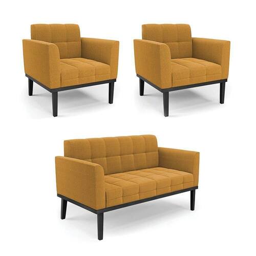 Namoradeira 2 Poltronas Base Madeira Fixa Pto Elisa Bouclê D03 - D?rossi Cor Mostarda O Sofá Namoradeira e 2 Poltronas Elisa é uma mobília que combina elegância, conforto e durabilidade. Ele tem um design retrô e sofisticado, com Base de Madeira Fixa Preto e revestimento em tecido Bouclê. Ele é ideal para sala de estar, recepções, escritórios, cozinhas ou qualquer outro espaço que você queira decorar com estilo e bom gosto. Ele tem uma estrutura em madeira de reflorestamento eucalipto, que garante a resistência e a sustentabilidade do produto. Ele suporta até 180 kg de peso, podendo ser utilizada por pessoas de diferentes biotipos. Ele tem um acabamento reforçado e espuma de qualidade D23, que oferece maciez e aconchego. Ele contém detalhes de costura no encosto e assento, resultando em um acabamento impecável, conferindo muito mais valor e elegância ao produto. O Sofá Namoradeira e 2 Poltronas Elisa é um móvel de alta qualidade, beleza e funcionalidade. Ele é fácil de transportar, pois tem um peso leve e um tamanho compacto. O Sofá Namoradeira e 2 Poltronas Elisa é um produto que vai fazer a diferença na sua decoração e no seu bem-estar. Ele vai trazer charme, conforto e durabilidade para o seu ambiente. Aproveite essa e leve para casa um Sofá Namoradeira e 2 Poltronas de qualidade por um preço incrível. Essa é a sua chance de ter um Sofá Namoradeira e 2 Poltronas maravilhoso por um preço imperdível. Corra e garanta o seu antes que acabe o estoque! Dimensões da Poltrona: Altura Total: 81 cm Largura Total: 64 cm Profundidade Total: 64 cm Altura do Encosto: 36 cm Largura do Assento: 47 cm Profundidade do Assento: 48 cm Altura do chão ao Assento: 45 cm Espessura do Assento: 18 cm Espessura do braço: 9 cm Altura interna do braço: 20 cm Tamanho dos pés: 30 cm Peso: 18 kg Dimensões da Namoradeira: Altura Total: 81 cm Largura Total: 114 cm Profundidade Total: 64 cm Altura do Encosto: 36 cm Largura do Assento: 96 cm Profundidade do Assento: 48 cm Altura do chão ao Assento: 45 cm Espessura do Assento: 18 cm Espessura do braço: 9 cm Altura interna do braço: 20 cm Tamanho dos pés: 30 cm Peso: 24 kg Especificações do Produto: Estrutura: Madeira Eucalipto Espuma: D-23 Tecido: Bouclê Peso Suportado: Até 180 Kg Tipo de Pés: Base de Madeira Preto Tipo de Encosto: Fixo Tipo de Assento: Fixo Complexidade da Montagem: Baixo Montagem: O produto vai montado, apenas parafusar a base Garantia: 90 dias contra de fabricação Instruções de Limpeza: Utilizar um pano limpo e levemente úmido Você irá Receber: 01 Sofá Namoradeira e 02 Poltronas - Entregue em: 03 Volumes