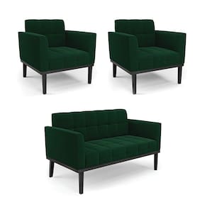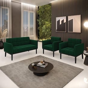 Namoradeira 2 Poltronas Base Madeira Fixa Pto Elisa Bouclê D03 - D?rossi Cor Verde O Sofá Namoradeira e 2 Poltronas Elisa é uma mobília que combina elegância, conforto e durabilidade. Ele tem um design retrô e sofisticado, com Base de Madeira Fixa Preto e revestimento em tecido Bouclê. Ele é ideal para sala de estar, recepções, escritórios, cozinhas ou qualquer outro espaço que você queira decorar com estilo e bom gosto. Ele tem uma estrutura em madeira de reflorestamento eucalipto, que garante a resistência e a sustentabilidade do produto. Ele suporta até 180 kg de peso, podendo ser utilizada por pessoas de diferentes biotipos. Ele tem um acabamento reforçado e espuma de qualidade D23, que oferece maciez e aconchego. Ele contém detalhes de costura no encosto e assento, resultando em um acabamento impecável, conferindo muito mais valor e elegância ao produto. O Sofá Namoradeira e 2 Poltronas Elisa é um móvel de alta qualidade, beleza e funcionalidade. Ele é fácil de transportar, pois tem um peso leve e um tamanho compacto. O Sofá Namoradeira e 2 Poltronas Elisa é um produto que vai fazer a diferença na sua decoração e no seu bem-estar. Ele vai trazer charme, conforto e durabilidade para o seu ambiente. Aproveite essa e leve para casa um Sofá Namoradeira e 2 Poltronas de qualidade por um preço incrível. Essa é a sua chance de ter um Sofá Namoradeira e 2 Poltronas maravilhoso por um preço imperdível. Corra e garanta o seu antes que acabe o estoque! Dimensões da Poltrona: Altura Total: 81 cm Largura Total: 64 cm Profundidade Total: 64 cm Altura do Encosto: 36 cm Largura do Assento: 47 cm Profundidade do Assento: 48 cm Altura do chão ao Assento: 45 cm Espessura do Assento: 18 cm Espessura do braço: 9 cm Altura interna do braço: 20 cm Tamanho dos pés: 30 cm Peso: 18 kg Dimensões da Namoradeira: Altura Total: 81 cm Largura Total: 114 cm Profundidade Total: 64 cm Altura do Encosto: 36 cm Largura do Assento: 96 cm Profundidade do Assento: 48 cm Altura do chão ao Assento: 45 cm Espessura do Assento: 18 cm Espessura do braço: 9 cm Altura interna do braço: 20 cm Tamanho dos pés: 30 cm Peso: 24 kg Especificações do Produto: Estrutura: Madeira Eucalipto Espuma: D-23 Tecido: Bouclê Peso Suportado: Até 180 Kg Tipo de Pés: Base de Madeira Preto Tipo de Encosto: Fixo Tipo de Assento: Fixo Complexidade da Montagem: Baixo Montagem: O produto vai montado, apenas parafusar a base Garantia: 90 dias contra de fabricação Instruções de Limpeza: Utilizar um pano limpo e levemente úmido Você irá Receber: 01 Sofá Namoradeira e 02 Poltronas - Entregue em: 03 Volumes