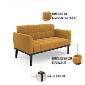 Namoradeira 2 Poltronas Base Madeira Fixa Pto Elisa Bouclê D03 - D`Rossi - Mostarda