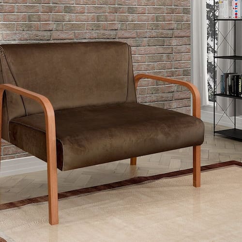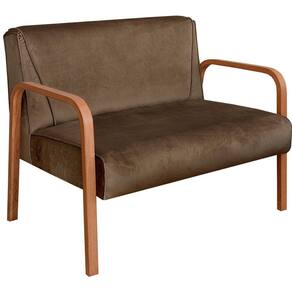 Namoradeira Anita Sofá 2 Lugares Moderna Braço Madeira Veludo Marrom 260