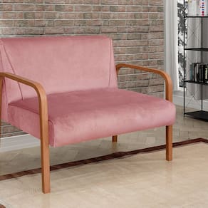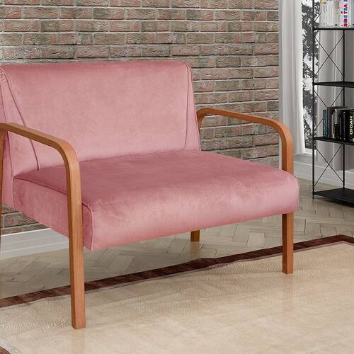 Namoradeira Anita Sofá 2 Lugares Moderna Braço Madeira Veludo Rosê 390 - Rosa