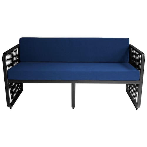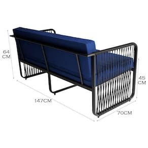 Namoradeira área Externa Alumínio Corda Náutica Santiago Preto/azul A Namoradeira Santiago e ideal para quem busca elegancia, conforto e durabilidade. Feita artesanalmente, sua estrutura em aluminio garante leveza e resistencia, enquanto os detalhes em corda nautica adicionam um toque sofisticado ao design. Seu assento estofado com tecido impermeavel proporciona maximo conforto e praticidade, tornando-a ideal para areas gourmet, varandas, espacos de lazer e areas externas. Requientando seu espaco criando ambientes inesqueciveis para amigos e familiares.