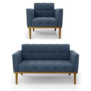 Namoradeira Com Poltrona Base De Madeira Castanho Elisa Suede D03 - D\`rossi Cor Azul Marinho