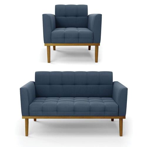 Namoradeira Com Poltrona Base De Madeira Castanho Elisa Suede D03 - D\\'rossi Cor Azul Marinho