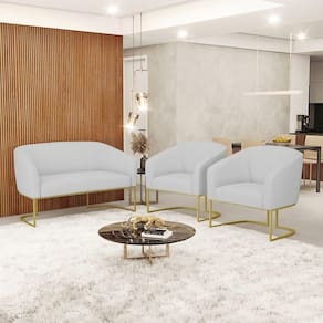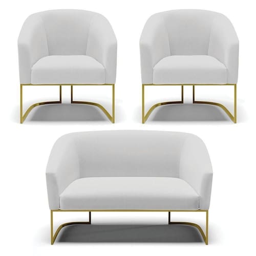 Você irá receber: 01 Sofá Namoradeira e 02 Poltronas - Entregue em: 03 Volumes