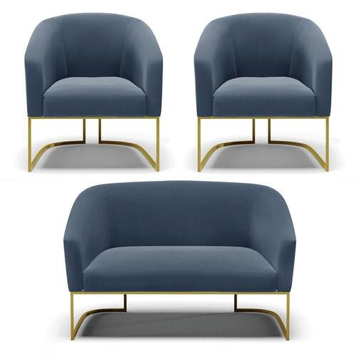 Você irá receber: 01 Sofá Namoradeira e 02 Poltronas - Entregue em: 03 Volumes