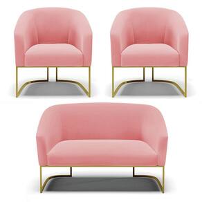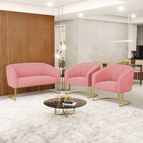 O Sofá Namoradeira 2 lugares e 2 Poltronas Stella é uma peça que combina elegância, conforto e durabilidade. Este conjunto tem um design moderno e sofisticado, com Base Industrial Dourado e revestimento em tecido Suede Rosê, que harmonizam com qualquer ambiente. Ele é ideal para sala de estar, recepções, mesa de jantar ou qualquer outro espaço que você queira decorar com estilo e bom gosto. Ele tem uma estrutura em madeira de reflorestamento eucalipto, que garante a resistência e a sustentabilidade do produto. Ele suporta até 120 kg de peso, podendo ser utilizado por pessoas de diferentes biotipos. Ele tem um acabamento reforçado e espuma de qualidade D23, que oferece maciez e aconchego. Tem pés em aço carbono e pintura eletrostática, que protegem o produto contra corrosão e desgaste. Ele tem assento com persintas elásticas, que proporcionam flexibilidade e conforto. O kit Stella é um produto de alta qualidade, beleza e funcionalidade. Ele é fácil de transportar, pois tem um peso leve e um tamanho compacto. O Sofá Namoradeira 2 lugares e 2 Poltronas Stella é um produto que vai fazer a diferença na sua decoração e no seu bem-estar. Ele vai trazer charme, conforto e durabilidade para o seu ambiente. Aproveite essa oferta e leve para casa um Sofá Namoradeira 2 lugares e 2 Poltronas qualidade por um preço incrível. Essa é a sua chance de ter um kit maravilhoso por um preço imperdível. Corra e garanta seu Sofá Namoradeira 2 lugares e 2 Poltronas antes que acabe o estoque!