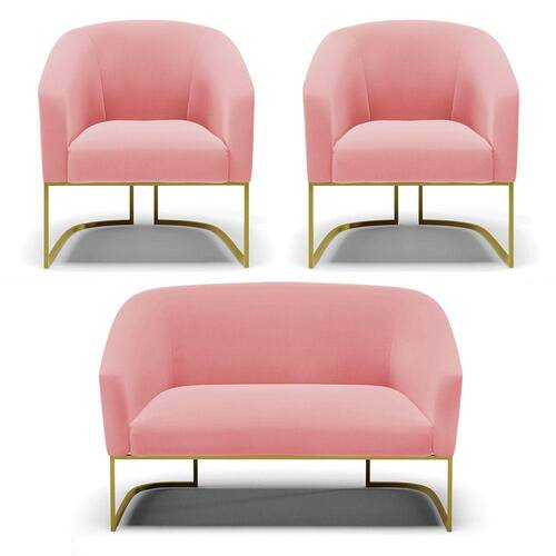 Você irá receber: 01 Sofá Namoradeira e 02 Poltronas - Entregue em: 03 Volumes