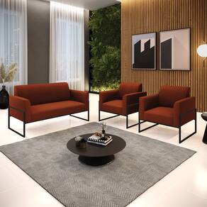Namoradeira e 2 Poltronas Industrial Alta Preto Marisa Bouclê Terra D03 - D`Rossi - Laranja