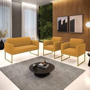 Namoradeira e 2 Poltronas Industrial Dourado Marisa Bouclê D03 - D`Rossi - Mostarda