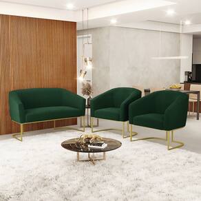 Tem novidades chegando por aqui! Olha só essa nossa inéditaNamoradeira e 2 Poltronas Stella Bouclê. Sim, as melhores opções em Namoradeira estão aqui! A Namoradeira e 2 Poltronas Stella Bouclê é para todas as ocasiões, é ideal para você relaxar, assistir tv ou ler um livro, mantendo-o confortável ao longo do dia! Um estofado versátil, que foge do convencional pelo seu design e tecido luxuoso. Seu formato curvo, marcante e sofisticado, oferece conforto de forma excepcional, com aquela sensação de abraço, que deixa o coração quentinho! Desenvolvida com atenção aos detalhes, para atender todas suas expectativas e necessidades. Seu aspecto arredondado e anatômico, possibilita que a postura fique sempre alinhada, mantendo a coluna na posição correta. Ela dispõe de um acabamento impecável, revestida em Bouclê em tom Verde, um tecido maleável que além de ser muito bonito, é a grande tendência do momento, por ser uma lã mais refinada, quente, com toque suave e agradável, semelhante à textura natural da ovelha. Contém uma estrutura robusta, sua sustentação é dada pela Base Industrial no tom Dourado, que garantem mais segurança e firmeza ao sentar-se. Já o enchimento é feito em espuma D-23 no encosto e assento, garantindo maior conforto ao usuário. Ah! Vale a pena lembrar que a Namoradeira e 2 Poltronas Stella Bouclê, foi produzida em quantidades limitadas, para aqueles que procuram criar um visual diferenciado e exclusivo. Então, não deixe de aproveitar esse lançamento, hem! Leve a sua agora mesmo.