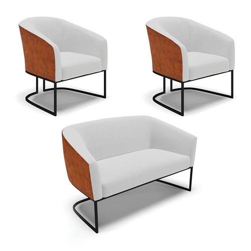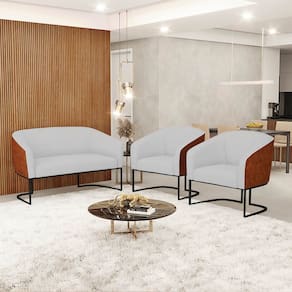 Você irá Receber: 01 Sofá Namoradeira e 02 Poltronas - Entregue em: 03 Volumes