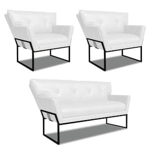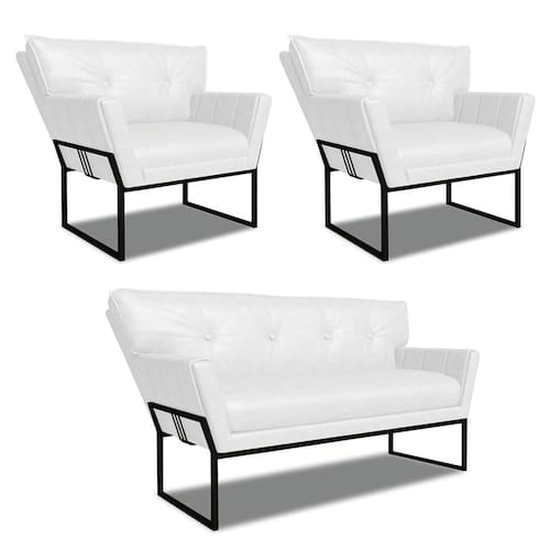 O Sofá Namoradeira e Poltrona Anitta é uma peça que combina beleza, conforto e funcionalidade. Ele tem um design contemporâneo, sofisticado e um revestimento em tecido Sintético PU Branco que harmonizam com qualquer ambiente. Possui uma base industrial preto com um belo detalhe trabalhado no metal, que além de adicionar um toque de charme à peça, oferece um suporte sólido e seguro, garantindo conforto superior ao sentar. Ideal para sala de estar, recepções, escritórios ou qualquer outro espaço que você queira decorar com estilo e bom gosto. Produzido cuidadosamente em madeira de reflorestamento eucalipto, que garante a resistência e a sustentabilidade do produto. Ele suporta até 180 kg de peso, podendo ser utilizado por pessoas de diferentes biotipos. Ele tem um acabamento reforçado e espuma de qualidade D23, que oferece maciez e aconchego. A almofada fixa do encosto é revestida com fibra siliconada e conta com um detalhe elegante em botonê, que não só valoriza o design, mas também proporciona uma sensação de conforto inigualável. O encosto levemente triangular de ambos adiciona uma estética exclusiva, enquanto os braços, com delicados frisos na costura enriquecem ainda mais o produto. O Sofá Namoradeira e Poltrona Anitta é um kit de alta qualidade, sutileza e versatilidade. Ele é fácil de transportar, pois tem um peso leve e um tamanho compacto. O Sofá Namoradeira e Poltrona Anitta é um produto que vai fazer a diferença na sua decoração e no seu bem-estar. Ele vai trazer personalidade e inovação para o seu ambiente. Aproveite essa oferta e leve para casa um sofá namoradeira e poltrona de qualidade por um preço incrível. Essa é a sua chance de ter um conjunto atraente na sua decoração por um preço imperdível. Corra e garanta o seu antes que acabe o estoque!