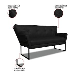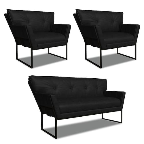 Namoradeira e 2 Poltronas Industrial Pto Anitta Sintét PU Preto D03 - D`Rossi