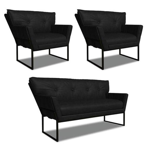 O Sofá Namoradeira e Poltrona Anitta é uma peça que combina beleza, conforto e funcionalidade. Ele tem um design contemporâneo, sofisticado e um revestimento em tecido Sintético PU Preto que harmonizam com qualquer ambiente. Possui uma base industrial preto com um belo detalhe trabalhado no metal, que além de adicionar um toque de charme à peça, oferece um suporte sólido e , garantindo conforto superior ao sentar. Ideal para sala de estar, recepções, escritórios ou qualquer outro espaço que você queira decorar com estilo e bom gosto. Produzido cuidadosamente em madeira de reflorestamento eucalipto, que garante a resistência e a sustentabilidade do produto. Ele suporta até 180 kg de peso, podendo ser utilizado por pessoas de diferentes biotipos. Ele tem um acabamento reforçado e espuma de qualidade D23, que oferece maciez e aconchego. A almofada fixa do encosto é revestida com fibra siliconada e conta com um detalhe elegante em botonê, que não só valoriza o design, mas também proporciona uma sensação de conforto inigualável. O encosto levemente triangular de ambos adiciona uma estética exclusiva, enquanto os braços, com delicados frisos na costura enriquecem ainda mais o produto. O Sofá Namoradeira e Poltrona Anitta é um kit de alta qualidade, sutileza e versatilidade. Ele é fácil de transportar, pois tem um peso leve e um tamanho compacto. O Sofá Namoradeira e Poltrona Anitta é um produto que vai fazer a diferença na sua decoração e no seu bem-estar. Ele vai trazer personalidade e inovação para o seu ambiente. Aproveite essa e leve para casa um sofá namoradeira e poltrona de qualidade por um preço incrível. Essa é a sua chance de ter um conjunto atraente na sua decoração por um preço imperdível. Corra e garanta o seu antes que acabe o estoque!