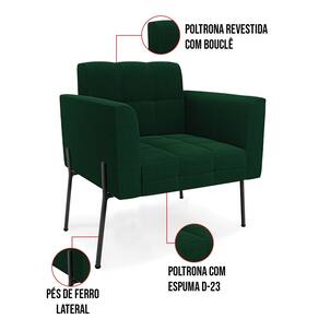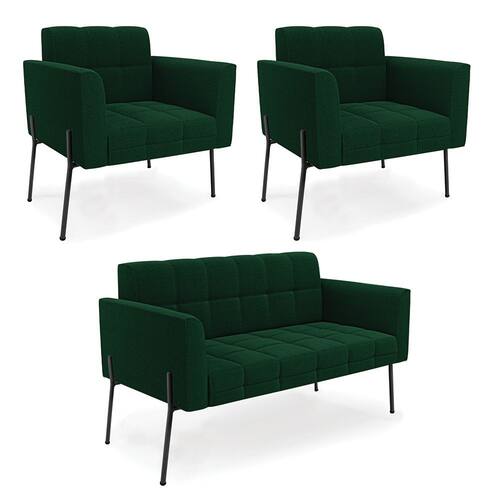O Sofá Namoradeira e 2 Poltronas Elisa é uma mobília que combina elegância, conforto e durabilidade. Ele tem um design retrô e sofisticado, com Pés Laterais de Ferro Preto e revestimento em tecido Bouclê. Ele é ideal para sala de estar, recepções, escritórios, cozinhas ou qualquer outro espaço que você queira decorar com estilo e bom gosto. Ele tem uma estrutura em madeira de reflorestamento eucalipto, que garante a resistência e a sustentabilidade do produto. Ele suporta até 180 kg de peso, podendo ser utilizada por pessoas de diferentes biotipos. Ele tem um acabamento reforçado e espuma de qualidade D23, que oferece maciez e aconchego. Ele contém detalhes de costura no encosto e assento, resultando em um acabamento impecável, conferindo muito mais valor e elegância ao produto. O Sofá Namoradeira e 2 Poltronas Elisa é um móvel de alta qualidade, beleza e funcionalidade. Ele é fácil de transportar, pois tem um peso leve e um tamanho compacto. O Sofá Namoradeira e 2 Poltronas Elisa é um produto que vai fazer a diferença na sua decoração e no seu bem-estar. Ele vai trazer charme, conforto e durabilidade para o seu ambiente. Aproveite essa oferta e leve para casa um Sofá Namoradeira e 2 Poltronas de qualidade por um preço incrível. Essa é a sua chance de ter um Sofá Namoradeira e 2 Poltronas maravilhoso por um preço imperdível. Corra e garanta o seu antes que acabe o estoque!