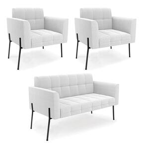 O Sofá Namoradeira e 2 Poltronas Elisa é uma mobília que combina elegância, conforto e durabilidade. Ele tem um design retrô e sofisticado, com Pés Laterais de Ferro Preto e revestimento em tecido Bouclê Off White, que harmonizam com qualquer ambiente. Ele é ideal para sala de estar, recepções, escritórios, cozinhas ou qualquer outro espaço que você queira decorar com estilo e bom gosto. Ele tem uma estrutura em madeira de reflorestamento eucalipto, que garante a resistência e a sustentabilidade do produto. Ele suporta até 180 kg de peso, podendo ser utilizada por pessoas de diferentes biotipos. Ele tem um acabamento reforçado e espuma de qualidade D23, que oferece maciez e aconchego. Ele contém detalhes de costura no encosto e assento, resultando em um acabamento impecável, conferindo muito mais valor e elegância ao produto. O Sofá Namoradeira e 2 Poltronas Elisa é um móvel de alta qualidade, beleza e funcionalidade. Ele é fácil de transportar, pois tem um peso leve e um tamanho compacto. O Sofá Namoradeira e 2 Poltronas Elisa é um produto que vai fazer a diferença na sua decoração e no seu bem-estar. Ele vai trazer charme, conforto e durabilidade para o seu ambiente. Aproveite essa oferta e leve para casa um Sofá Namoradeira e 2 Poltronas de qualidade por um preço incrível. Essa é a sua chance de ter um Sofá Namoradeira e 2 Poltronas maravilhoso por um preço imperdível. Corra e garanta o seu antes que acabe o estoque!