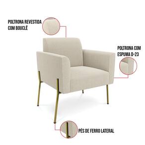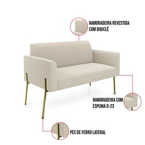 Namoradeira e 2 Poltronas Pé Ferro Dourado Marisa Bouclê D03 - D`Rossi - Bege