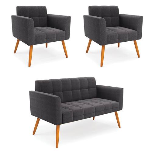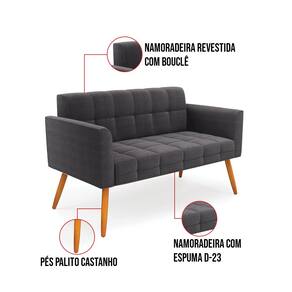 Namoradeira e 2 Poltronas Pé Palito Castanho Elisa Bouclê D03 - D`Rossi - Grafite