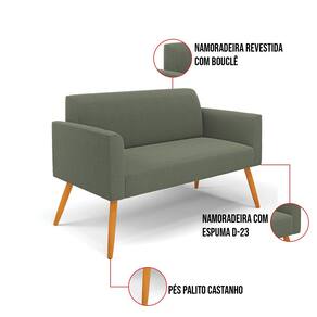 O Sofá Namoradeira e 2 Poltronas Marisa é a escolha perfeita para quem deseja unir conforto e comodidade em um estilo elegante. Com um design único, ele possui Pés Palito Castanho que harmoniza com o seu belíssimo tom Pistache, criando uma combinação elegante de conforto e estilo. Ele é perfeito para quem busca móveis que não só sejam bonitos, mas que também proporcionem bem-estar. Ideal para compor salas de estar, recepções, bibliotecas, salas de leitura, espaços de design e até áreas comerciais, essa peça versátil é pensada para ambientes que excluam beleza e aconchego. Sua estrutura, em madeira de reflorestamento de eucalipto, oferece resistência e sustentabilidade, suportando até 180 kg, garantindo segurança para usuários de diferentes biotipos. O conforto é outro destaque, com estofado em espuma prorelax D-23, que proporciona suporte e maciez ideais. Revestido em Bouclê, um tecido maleável e sofisticado, Sofá Namoradeira e 2 Poltronas Marisa segue a tendência do momento com um toque suave e quente, remetendo à textura natural da lã. Leve e fácil de transportar, Sofá Namoradeira e 2 Poltronas é um item que agrega charme e durabilidade ao seu espaço. Não perca a oportunidade de adquirir essa peça exclusiva que fará toda a diferença na sua decoração e no seu bem-estar. Aproveite agora!